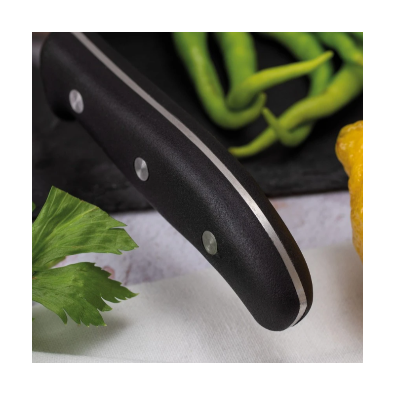 <p>- Faca de cozinha.<br />- Aço inoxidável, molibdênio vanádio.<br />- Polimento fosco.<br />- Cabo de polipropileno.<br />- Design ergonômico.<br />- Umidade-wicking, leve e durável.<br />- Estável em altas e baixas temperaturas.<br />- Material termoplástico de alta qualidade.<br />- Máxima higiene.<br />- Alta performance.<br />- Grande durabilidade.<br />- Apresentado com capa de chapa.</p>