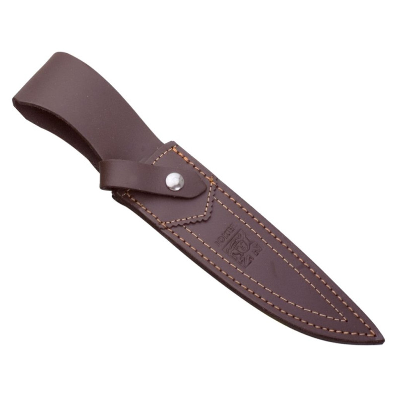 <p> ESCULPIDO À MÃO</p> <p> Lâmina: Molibdênio Vanádio<br /> Crosshead: Aço inoxidável.<br /> Capa: Couro<br /> Manguito: Ponta de veado esculpida à mão<br /> 14cm - 220gr</p>