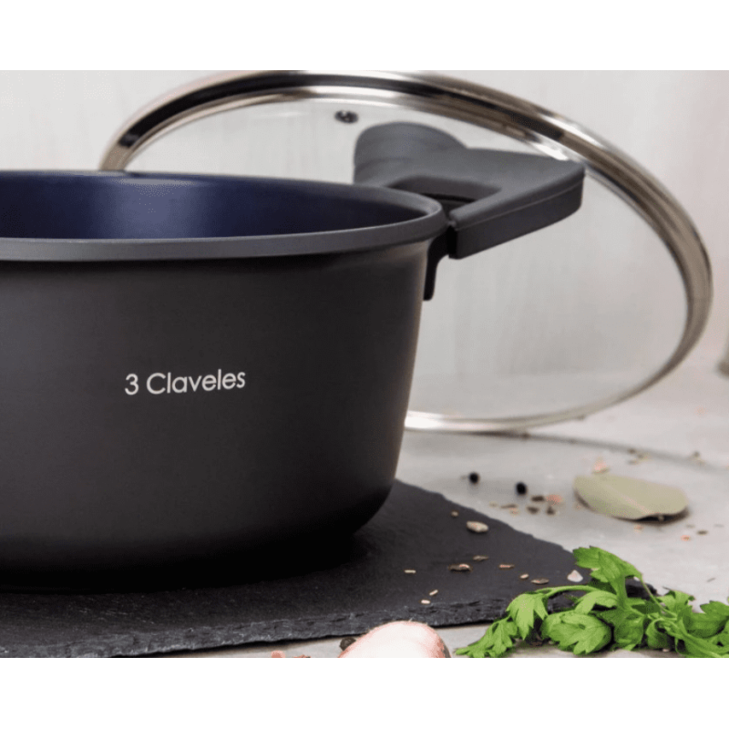 Panela + tampa Ø 28 cm. Escuro. 3 Claveles