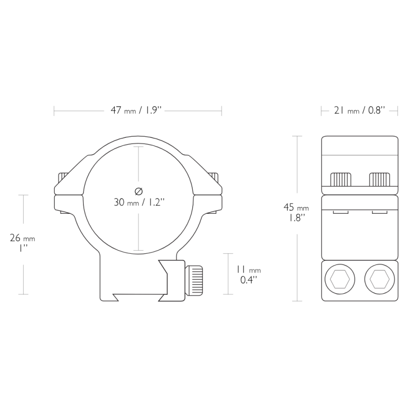 Esses suportes são adequados para escopos com diâmetro de 30mm e são compatíveis com fuzis que possuem um trilho de 9-11mm dovetail. A altura média é útil para fornecer um ponto de vista adequado para o usuário. Além disso, os fixadores hexagonais duplos e os recursos de segurança como a almofada interna e o pino de recuo retrátil contribuem para a estabilidade e confiabilidade do conjunto.