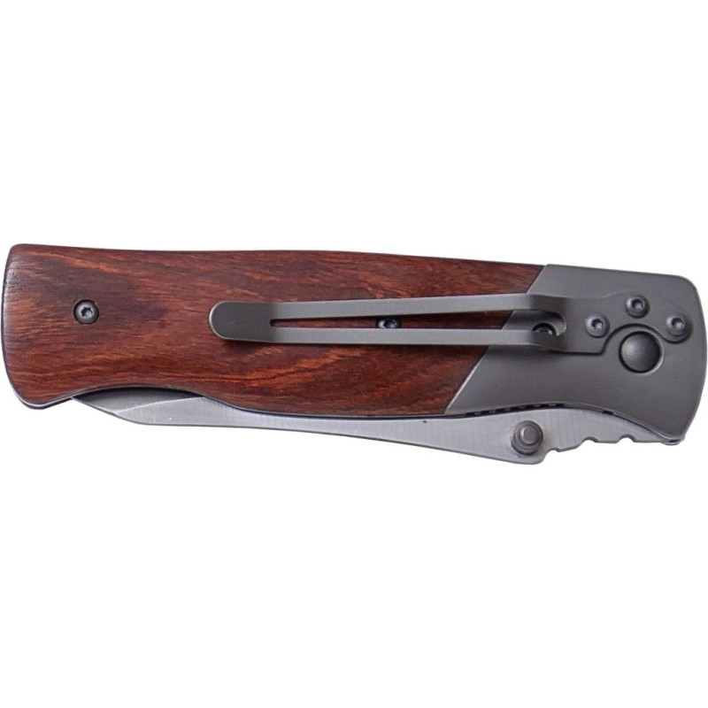 <p> Lâmina: Aço inox 8,5cms<br /> ? Revestimento em titânio<br /> Punho: Madeira</p>