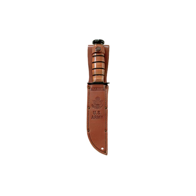 Inclui uma caixa de couro marrom gravada com o selo do Exército dos EUA. Ele é projetado nos EUA e com o logotipo KA-BAR.