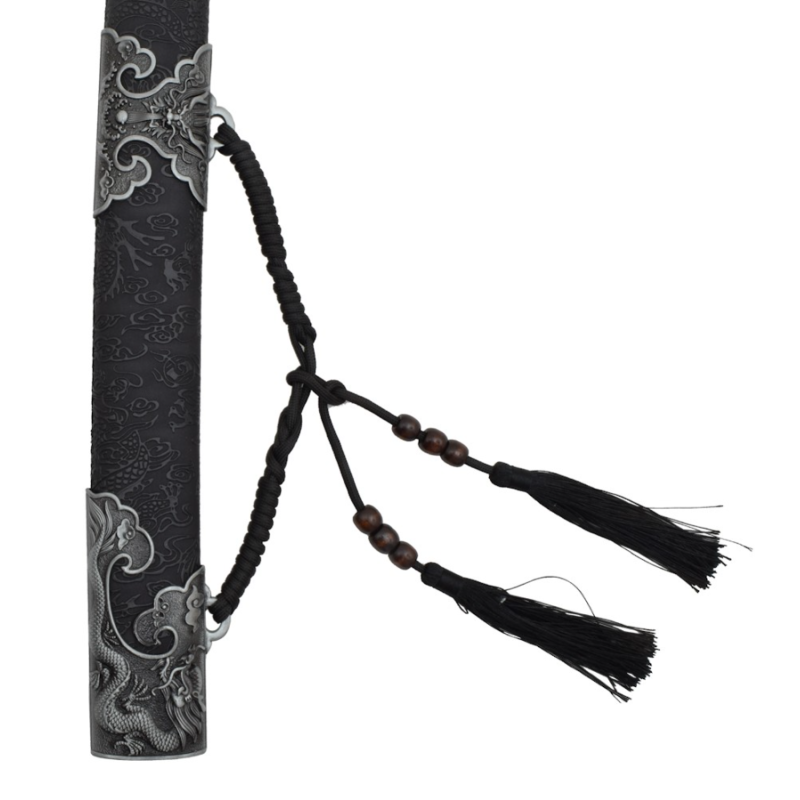 <p>- Espada decorativa inspirada na espada tradicional da dinastia Ming</p> <p>- Lâmina de aço - Cabo de madeira e metal - Bainha de madeira</p> <p>- Proteção metálica e botão</p> <p>- Comprimento da lâmina: 890 mm - Comprimento total: 1320 mm</p> <p>- Peso: 2040 g</p>