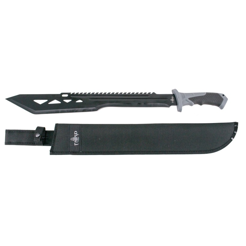 <p>Third facão de sobrevivência com lâmina de aço inoxidável banhada na cor preta.</p> <p>Punho ergonómico em plástico</p> <p> </p><p>Medição:</p> <p>Tamanho da lâmina: 49,8 centímetros</p> <p>Corte cm: 48 centímetros</p> <p>Espessura da lâmina: 3 mm</p> <p>Tamanho do punho: 15,4 centímetros</p> <p>Comprimento Total: 64,2 cm</p> <p> </p><p>Caraterísticas:</p> <p>Lâmina: Aço 420</p> <p>Punho do facão: PP+TPR Plástico</p> <p>Peso: 597 gramas</p> <p>Capa: Nylon</p>