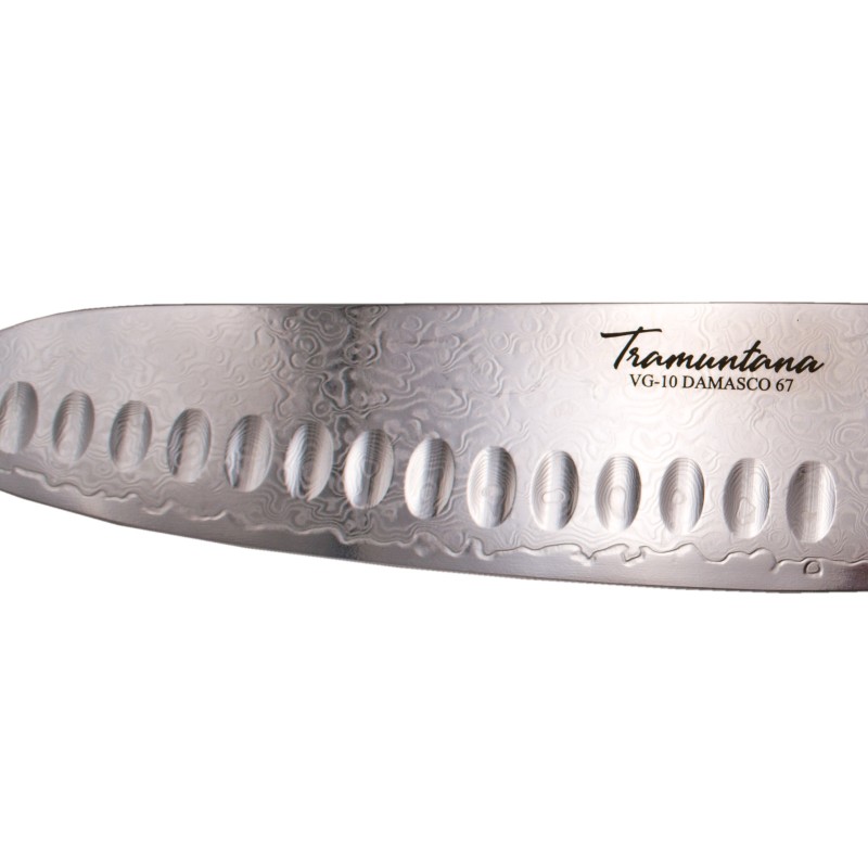 <p>Faca de cozinha Tramuntana modelo CD11 Santoku lâmina de aço damasco VG10 de 67 camadas de 17,9 cm, cabo Abalone com epóxi, com caixa de apresentação.</p>