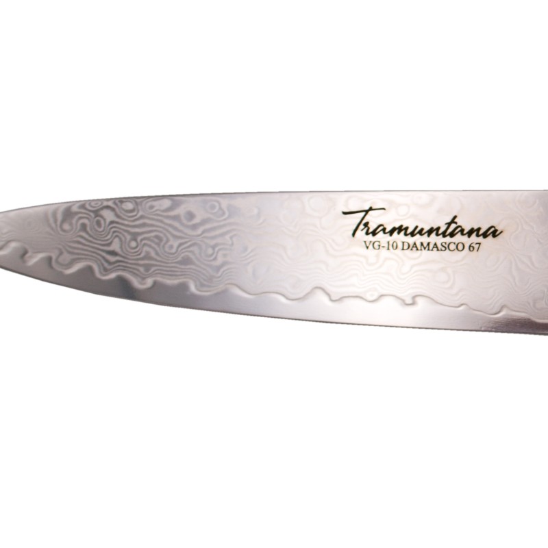 Faca de cozinha Tramuntana modelo CD12 Utility Damask lâmina de aço VG10 de 67 camadas de 12,5 cm, cabo Abalone com epóxi, com caixa de apresentação.