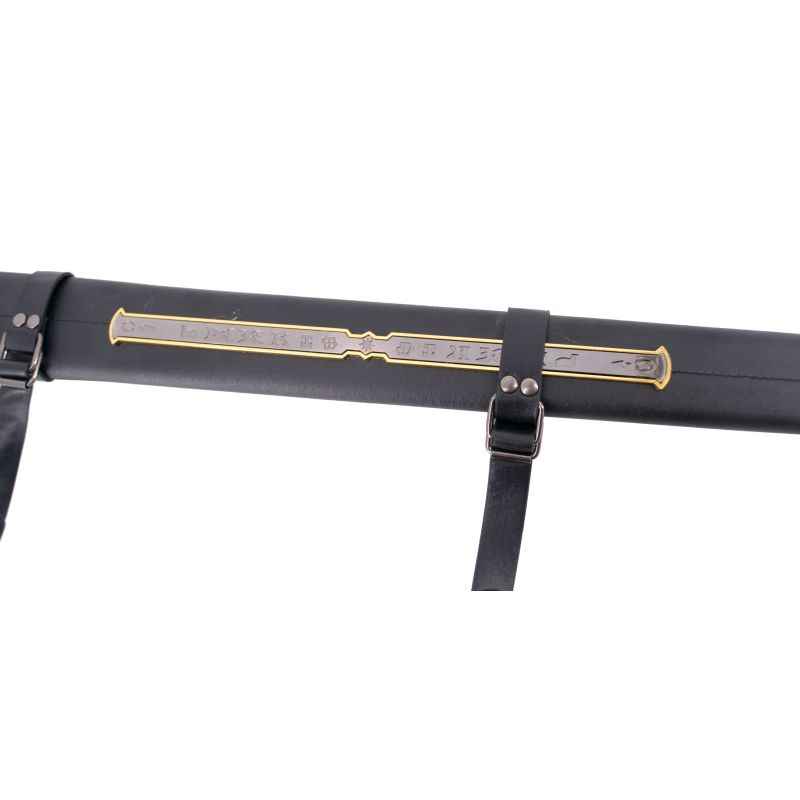 <p>Espada S0345 Modelo Andúril, réplica não oficial, com um tamanho total de 120 cm, lâmina de aço com runas, cabo acabado em níquel e ouro com uma bainha terminada em couro falso preto com partes metálicas em níquel e ouro, com uma placa com runas na parte da costura da bainha. Com stand decorado.</p>