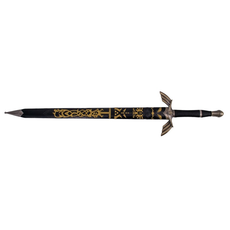 <p>Legend of Zelda Sword, modelo não oficial, com um tamanho total de 126,7 cm, lâmina de aço com gravação e cabo com cabo preto, bainha forrada em couro falso preto com detalhes dourados.</p> <p><strong>Modelo:</strong> Ref. S5087<br /><strong>Tamanho total:</strong> 126.7 cm<br /><strong>Tamanho da lâmina: </strong>77,5 cm<br /><strong>Espessura da lâmina:</strong> 3 mm<br /><strong>Peso: </strong>1355 gr</p> <p>Sem suporte</p>