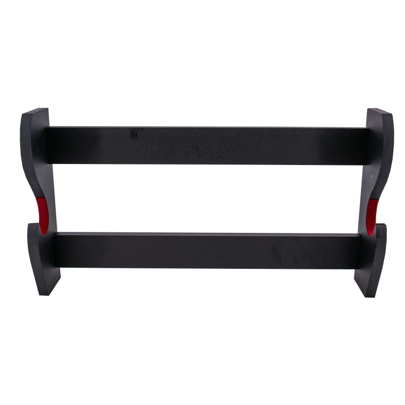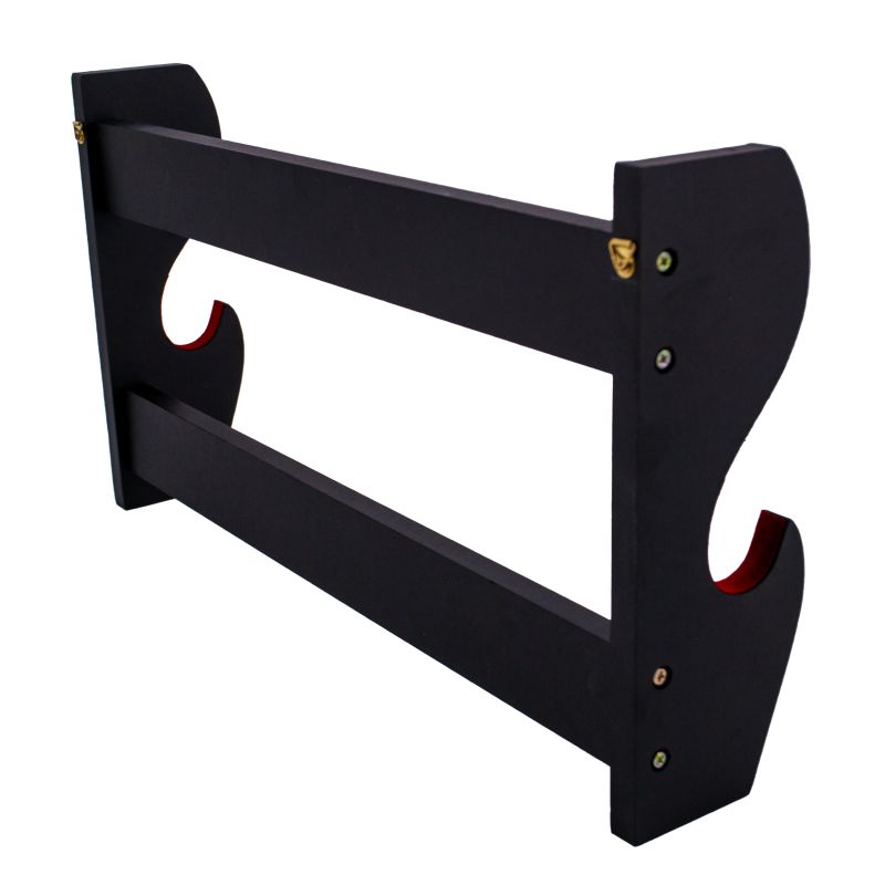 Feito de madeira preta e com veludo vermelho na área de apoio das katanas