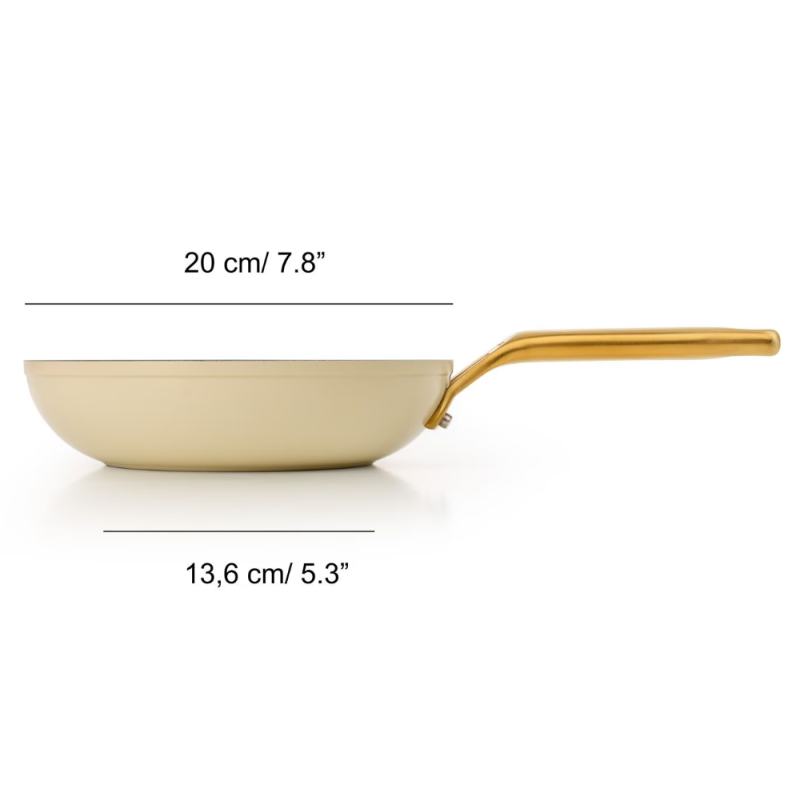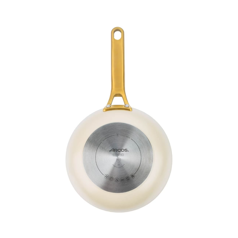 <p>Samoa Panela antiaderente icônica da Arcos.</p><p>Diâmetro de 20 cm e profundidade de 5 cm.</p><p>Design elegante com cores bege e cabo de aço inoxidável dourado.</p><p>Fabricado em alumínio forjado: resistente e leve.</p><p>Revestimento cerâmico e distribuição uniforme de calor.</p><p> Punho com orifício suspenso</p>
