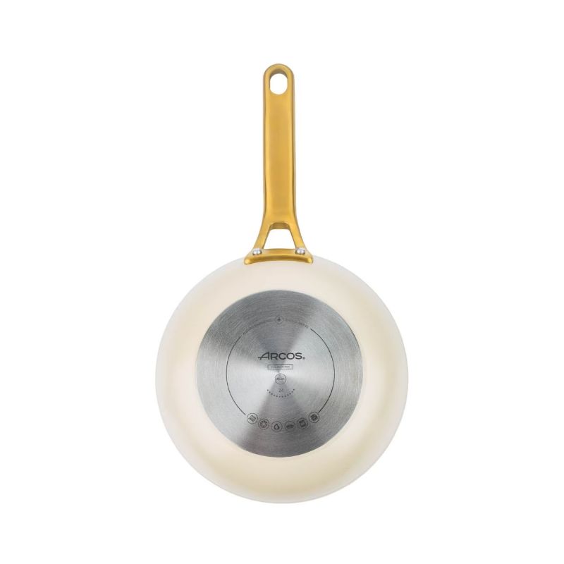 <p>A panela Samos Iconic de 28 cm Arcos é a escolha ideal para quem procura um desempenho superior e uma cozinha saudável. Seu revestimento cerâmico e design de alumínio forjado permitem cozinhar com menos óleo e em temperaturas mais baixas, o que favorece tanto a eficiência energética quanto uma alimentação mais saudável.</p> <ul> <li>Revestimento cerâmico: Requer menos energia térmica, permitindo uma cozedura eficiente a temperaturas médias ou baixas.</li> <li>Distribuição uniforme de calor: Garante um ótimo desempenho e contribui para a economia de energia.</li> <li>Cozinha Saudável: Cozinhe com menos óleo, promovendo uma alimentação mais saudável.</li> <li>Tamanho ideal (28 cm): Perfeito para preparar crepes, omeletes e batatas fritas.</li> <li>Design sofisticado: exterior bege e cabo em aço inoxidável dourado, proporcionando elegância e modernidade.</li> <li>Material Premium: Feito de alumínio forjado, leve e resistente.</li> <li>Fácil armazenamento: manuseie com furo para pendurá-lo e otimizar o espaço na sua cozinha.</li> </ul>
