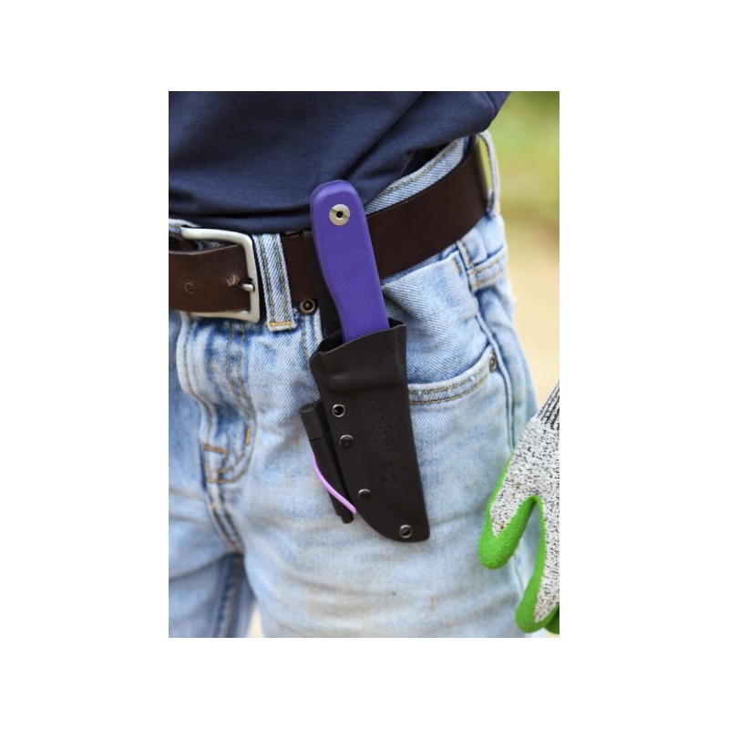 <p>Schnitzel faca DU, para crianças, roxa</p> <p></p> <p>- Material da lâmina: aço inoxidável 14C28N com acabamento anti-corrosão </p> <p>- Material de aderência: G-10 em roxo (também disponível em verde-oliva, amarelo e vermelho) </p> <p>- Comprimento total: aprox. 18,5 cm </p> <p>- Comprimento da lâmina: aprox. 8,5 cm </p> <p>- Espessura da lâmina: aprox. 3 mm </p> <p>- Comprimento do punho: aprox. 10 cm </p> <p>- Espessura do punho: aprox. 14 mm </p> <p>- Inclui bainha Kydex, suporte de aço fogo (preto) e aço fogo </p> <p>- Peso: aprox. 128 g (aprox. 176 g com caixa)</p>