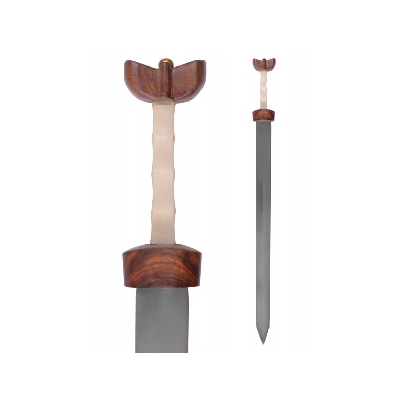 <p>Espada de cavalaria romana com cinto</p> <p></p> <p>- Cabo de madeira e osso </p> <p>- Inclui bainha com alça de ombro (alça)</p> <p>- Material da lâmina: aço de mola EN45 </p> <p>- Comprimento total: aprox. 81,5 cm </p> <p>- Comprimento da lâmina: aprox. 64 cm </p> <p>- Peso: aprox. 790 g As especificações acima podem variar ligeiramente de item para item.</p> <p></p>