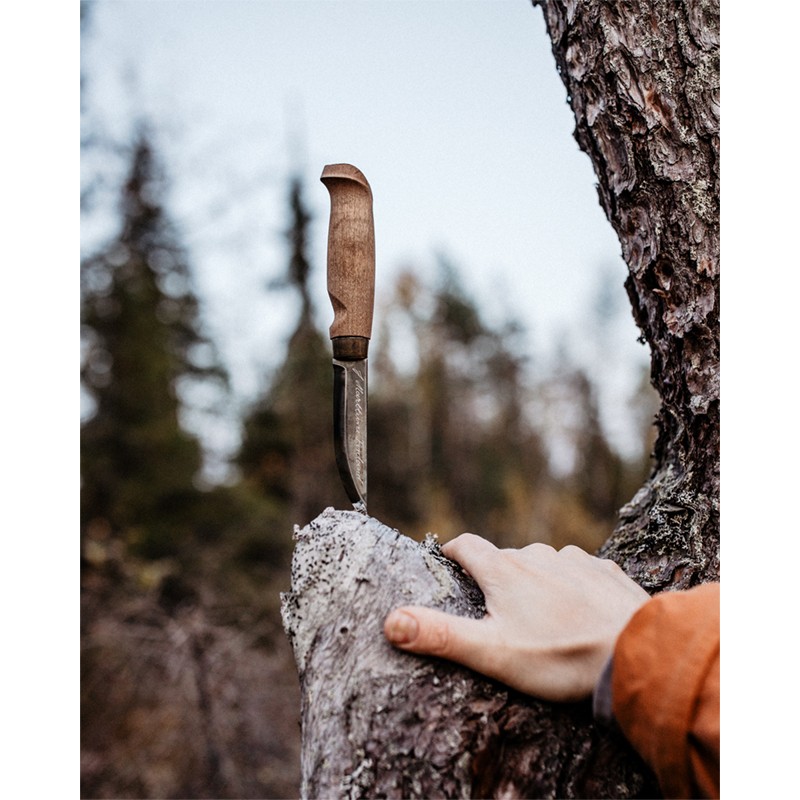 <p>Lenhador Carbono Marttiini Faca</p> <p></p> <p>-DIMENSÕES:</p> <p>Comprimento da lâmina</p> <p>10 centímetros</p> <p></p> <p>-Comprimento total:</p> <p>22 centímetros</p> <p></p> <p>-MATERIAIS:</p> <p>Material da lâmina</p> <p>Aço carbono 1.2003 / X75Cr1, HRC 55-57</p> <p></p> <p>-Material do punho:</p> <p>bétula, corada</p> <p></p> <p>-Material da Caixa:</p> <p>pele, castanho</p> <p></p> <p>A lâmina é feita de aço carbono, ideal para esculpir e fácil de afiar até recuperar sua borda original. Lembre-se de cuidar bem da sua faca de aço carbono: seque-a sempre com cuidado após cada uso e escove-a com óleo sem sal regularmente. Isto garantirá que dure muitos anos.</p> <p></p> <p>O cabo desta faca é feito de bétula manchada. A sua superfície tem uma textura leve que permite uma aderência firme e segura.</p>
