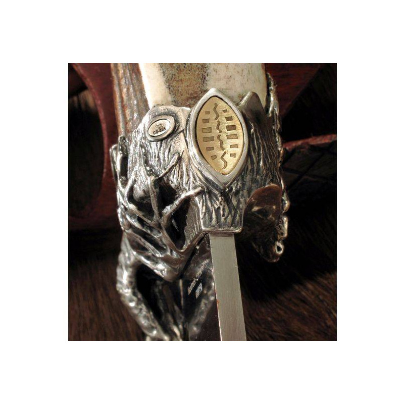 - Alça feita de chifre de veado com roseta decorada com um pedaço de prata de lei.