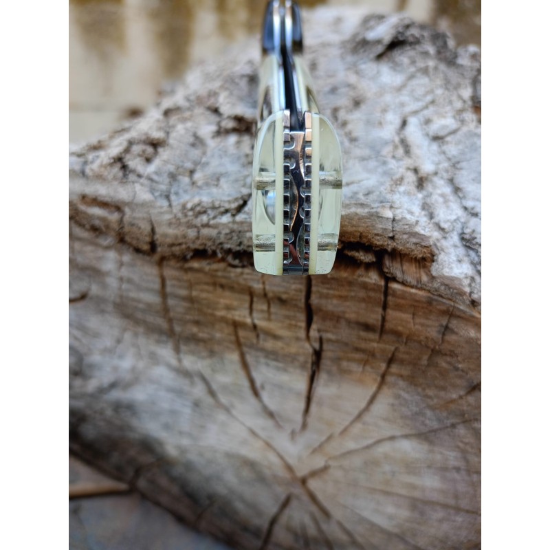- Cabo de resina óssea e metacrilato com inserção de pena natural