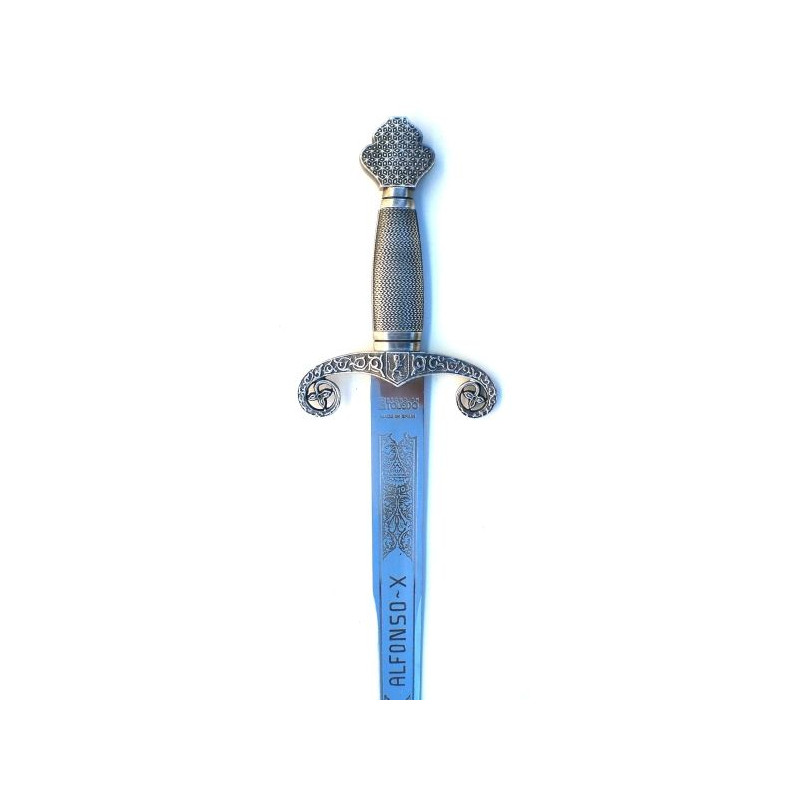 Alfonso X em prata envelhecida, com lâmina de aço inoxidável.