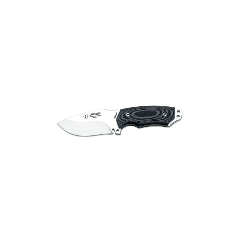 <p>Comprimento da lâmina: 9 cm</p> <p>Comprimento do punho: 10,5 cm</p> <p>Comprimento total: 19,5 cm</p> <p>Espessura da lâmina: 5 mm</p> <p>Largura da lâmina: 4 cm</p> <p>Folha: Esvaziamento</p> <p>Acabamento da folha: Cetim</p> <p>Dica da lâmina: Drop-Point</p> <p>Aço: Böhler N-695</p> <p>Dureza do aço: 59/60 HRc</p> <p>Estrutura: Peça única</p> <p>Âncora do punho: Parafuso allen de aço inoxidável / bucha interna roscada de latão</p> <p>Puxador: Micarta de cetim preto com divisória vermelha</p> <p>Material da capa: couro preto (incluído)</p> <p>Peso da peça: 250 gr (aproximado)</p> <p>Peso da caixa: 300 gr (aproximado)</p> <p> </p><p><strong>Extras</strong></p> <p>- Pino para fixação do cabo</p> <p>- Disjuntor de Vidro</p> <p>- Quebra fios</p> <p>- Zíper na lâmina para melhor aderência</p> <p>- Tampa multi-posição</p> <p>- Adaptador de couro preto completo (644-N) incluindo:</p> <p>-Whetstone</p> <p>- Espelho de sinal</p> <p>-Relógio de sol</p> <p>-Pederneira</p> <p>- Paracord Vermelho (2,80 m)</p>