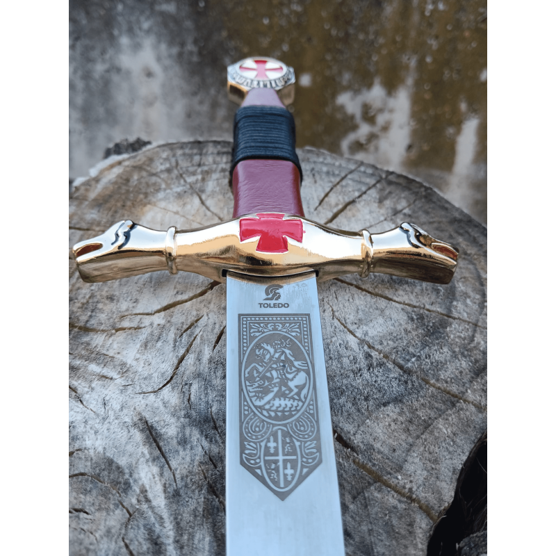 No punhal pode ler-se ao lado da cruz chutada: "Sigillum militum xpristi". lema dos Cavaleiros Templários.